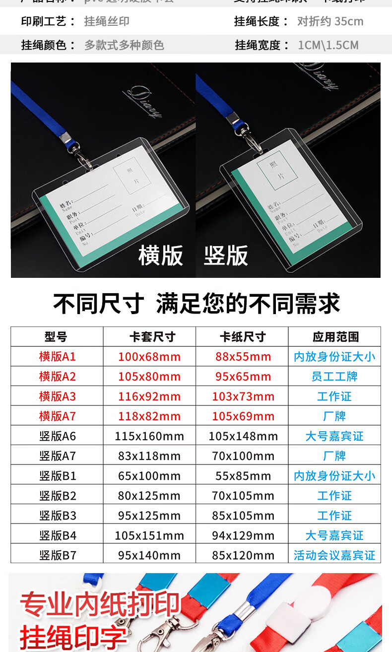 商品名称:工牌卡套带挂绳定制嘉宾展会参会双面透明工号牌胸卡 竖款+挂绳