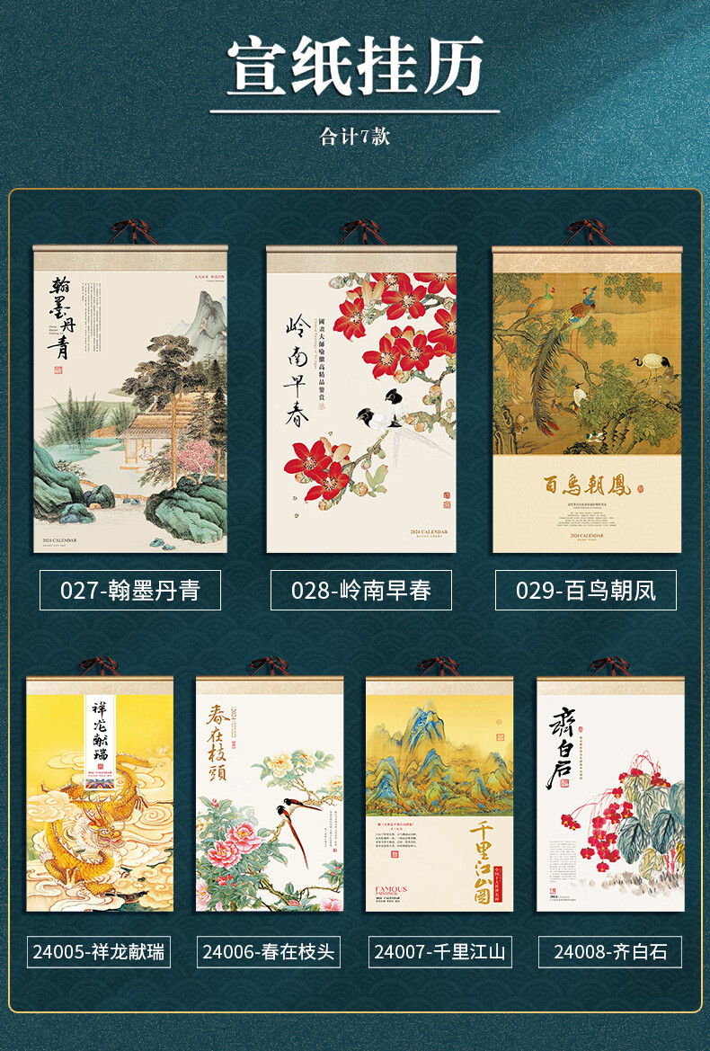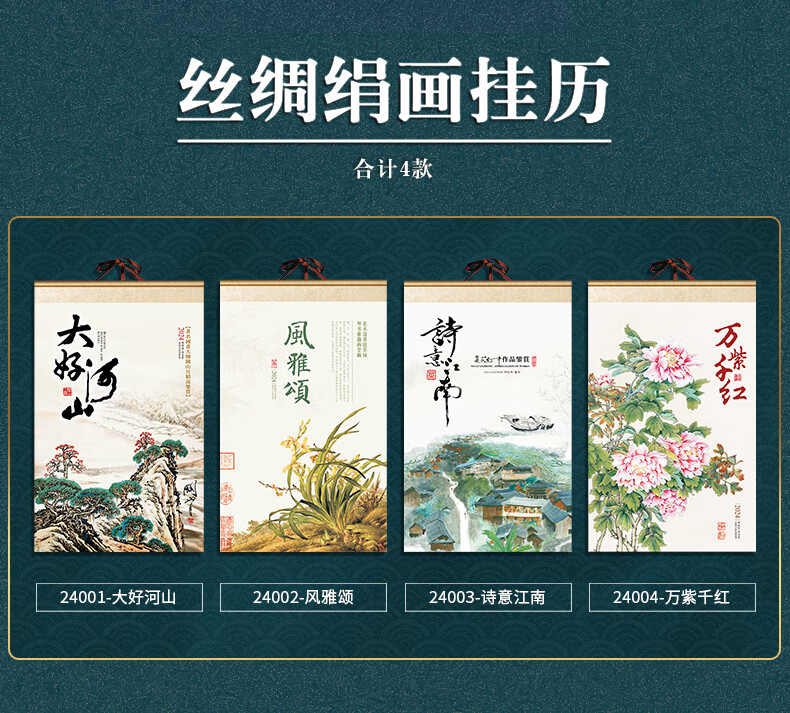 家用挂墙中国风大号手撕日历高档丝绸宣纸卷轴式艺术月历