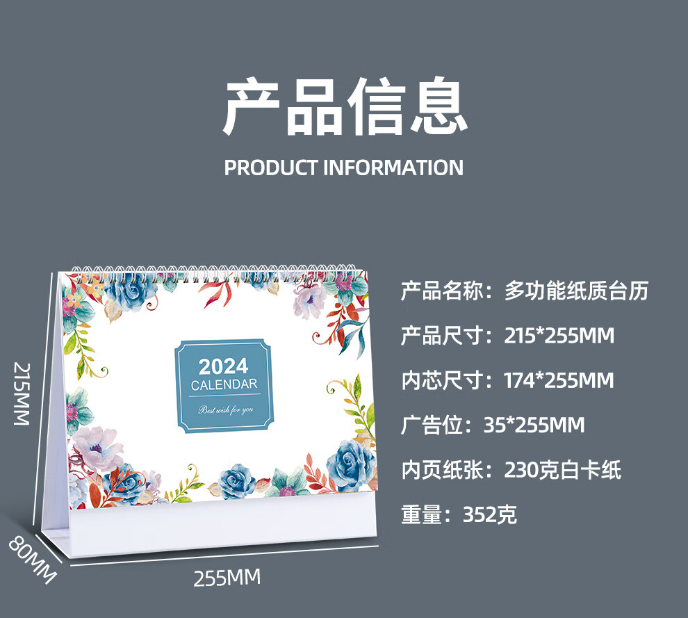 商品名称:台历日历龙年月历大格子书写计划本式年历简约办公桌面日历