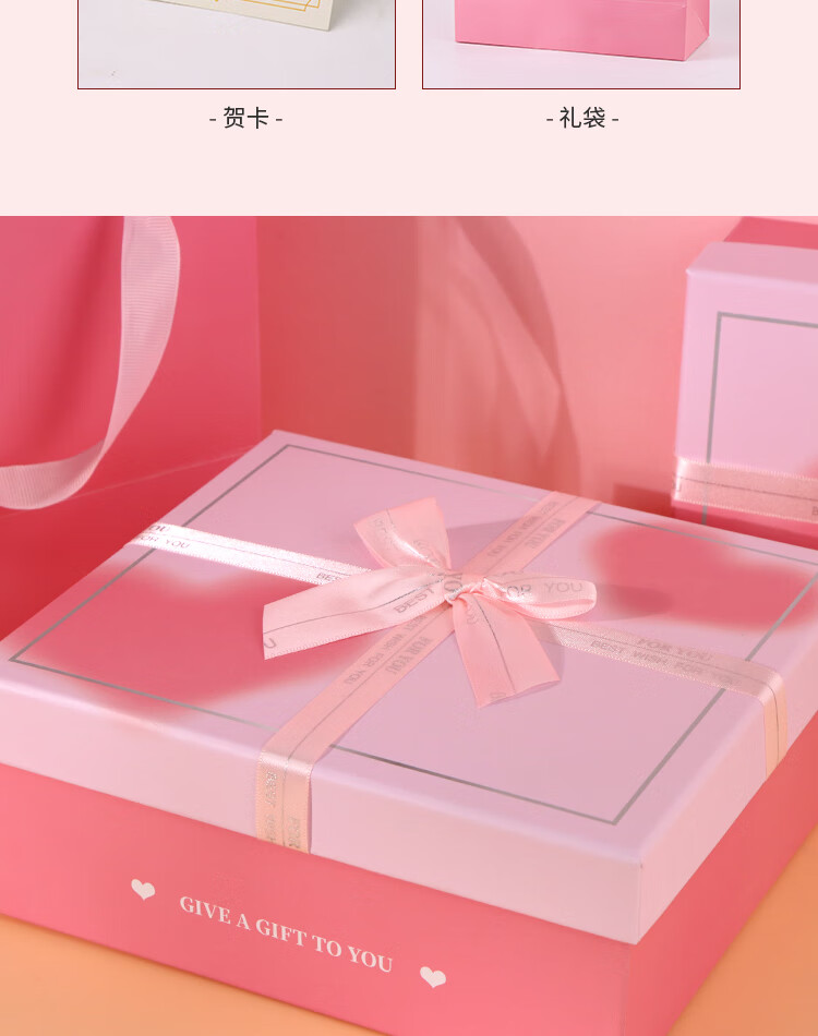 > 礼盒空盒520情人节礼物盒礼品包装盒生日礼物盒蝴蝶结爱心粉色