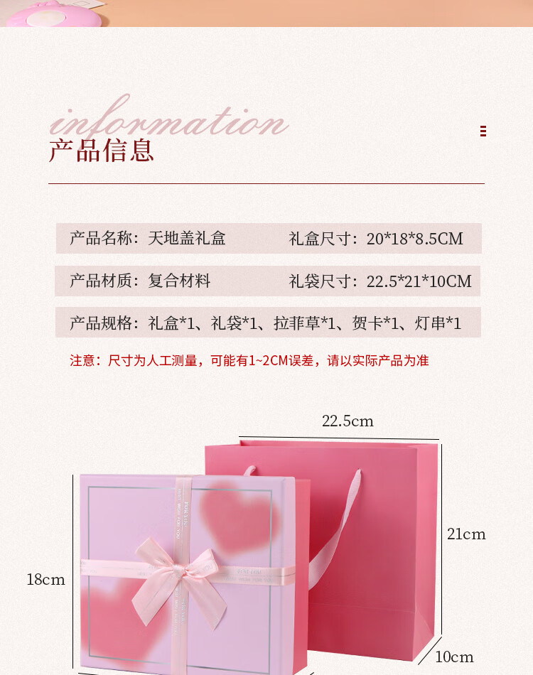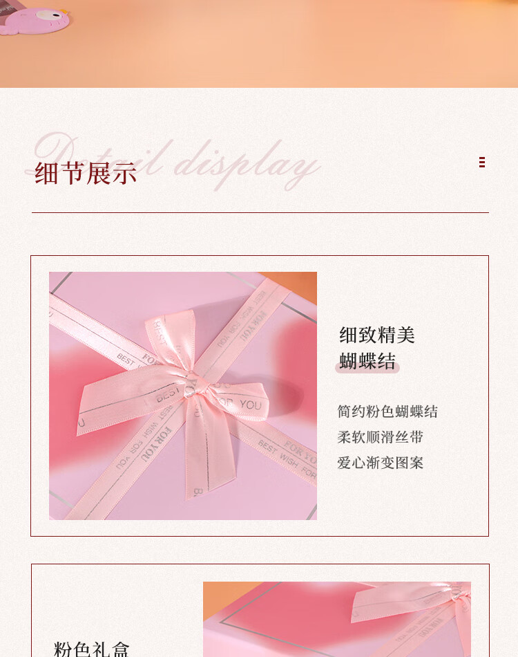包装清单:礼品盒 粉色蝴蝶结爱心渐变*1