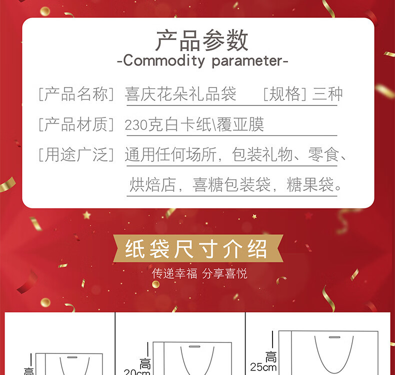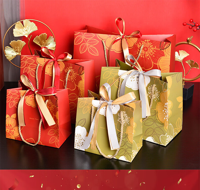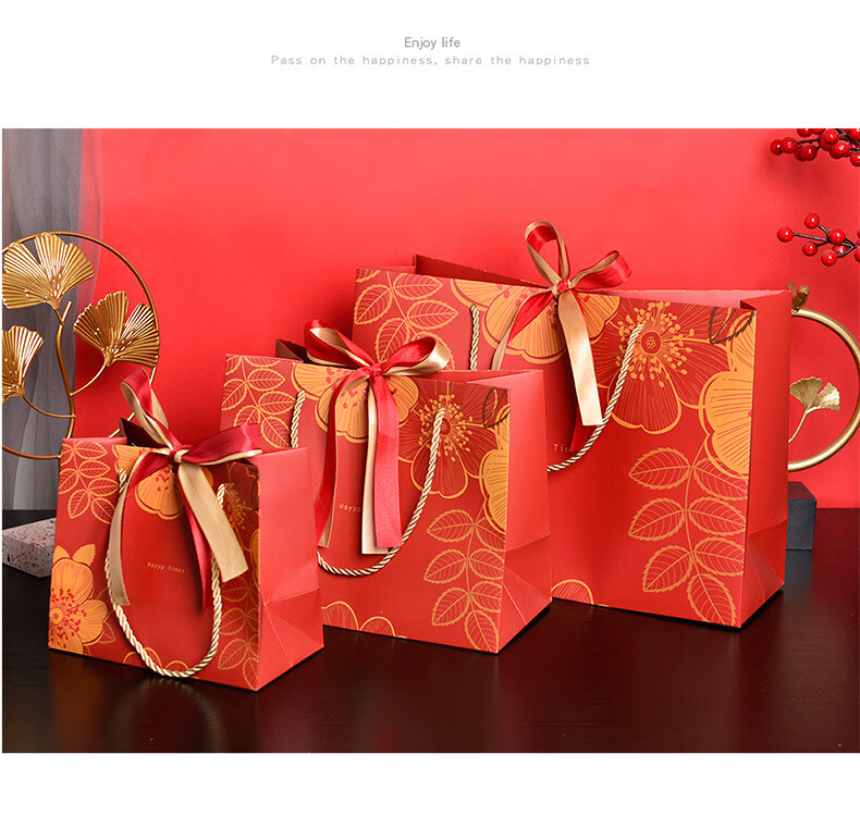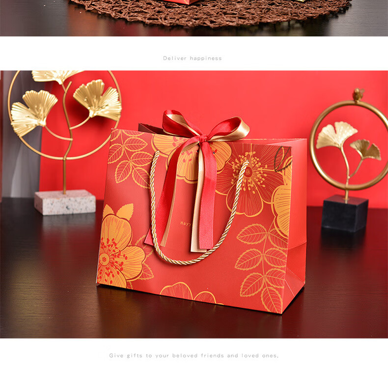 商品名称:中国风红色礼品袋 母亲节手提袋 红牡丹花 大号约36*25*12cm(3个)