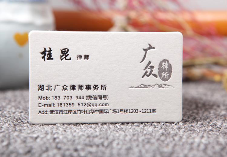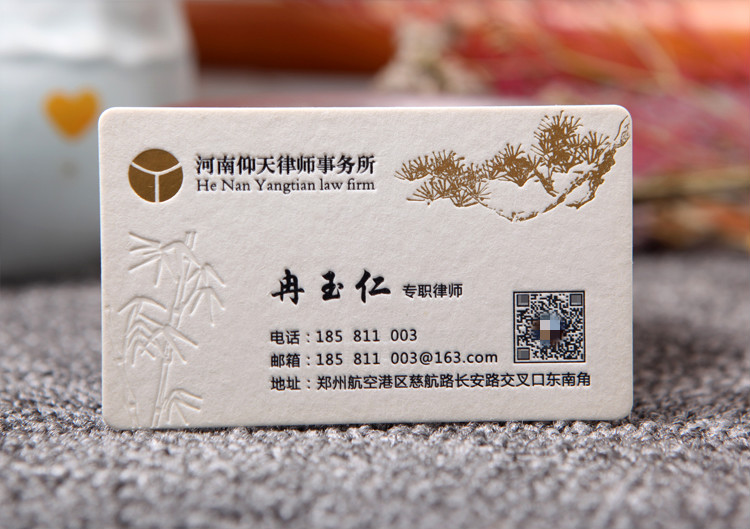 商品名称:名片定制棉纸压凹烫金律师事务所商务公司凹凸卡片 加厚棉纸100张,200张起订