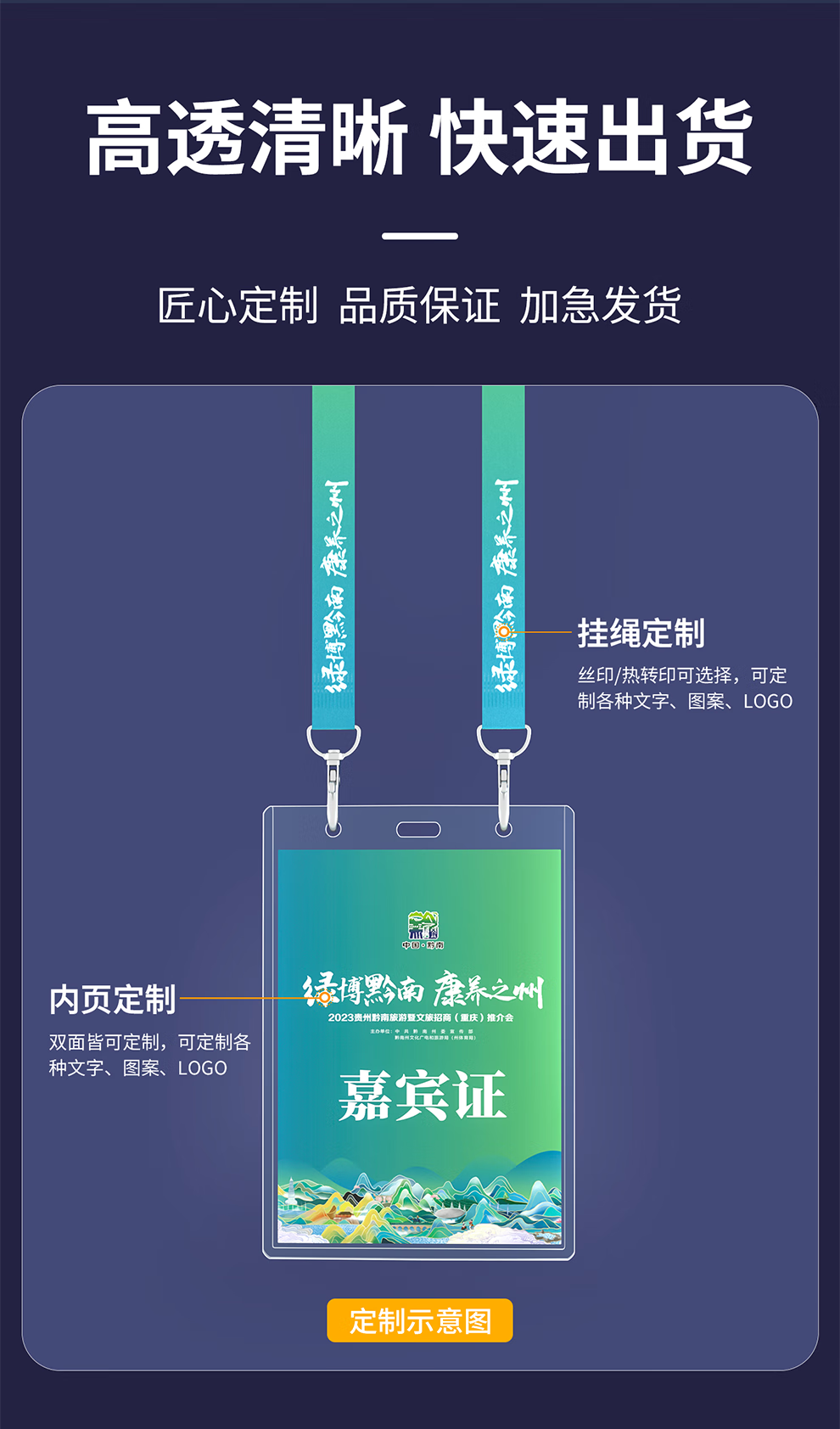 参会证嘉宾证卡套挂绳透明嘉宾胸牌裁判证工作牌
