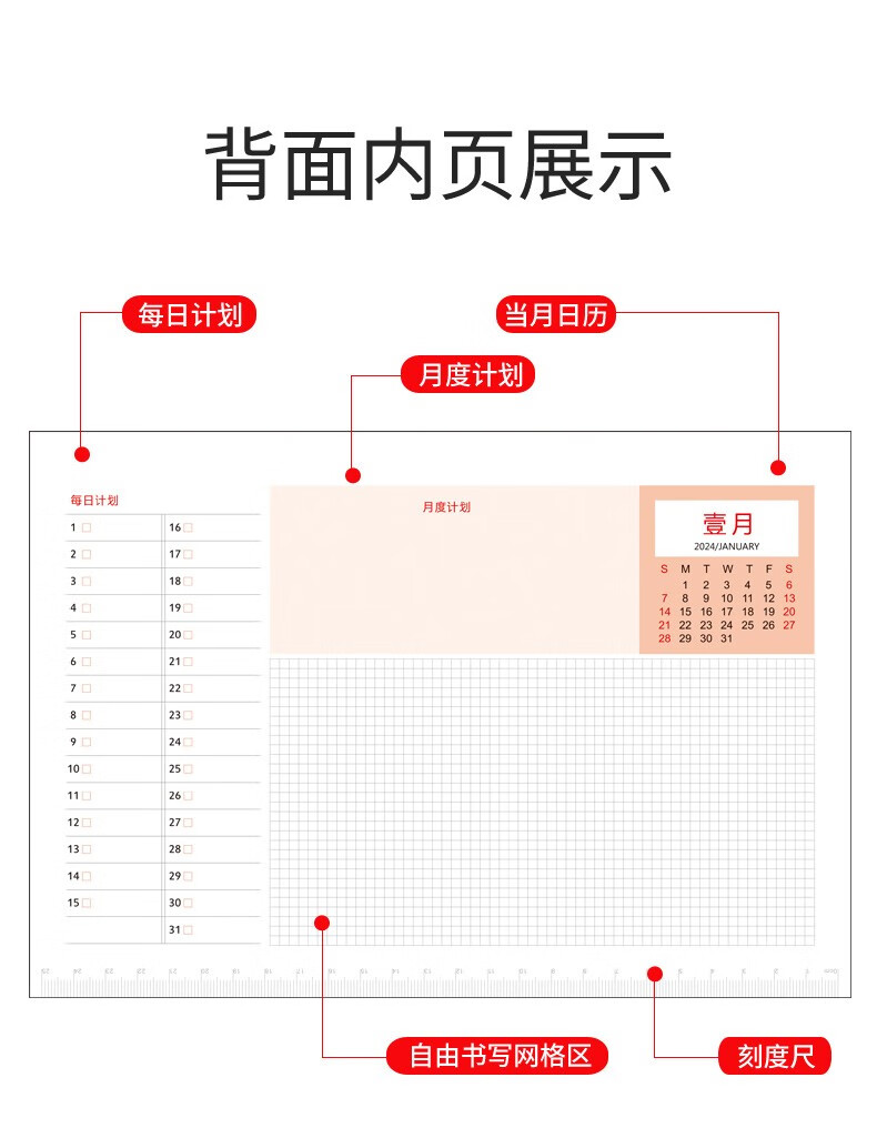 > 台历日历大格子记事可定制办公计划本打卡自律月计划表月历