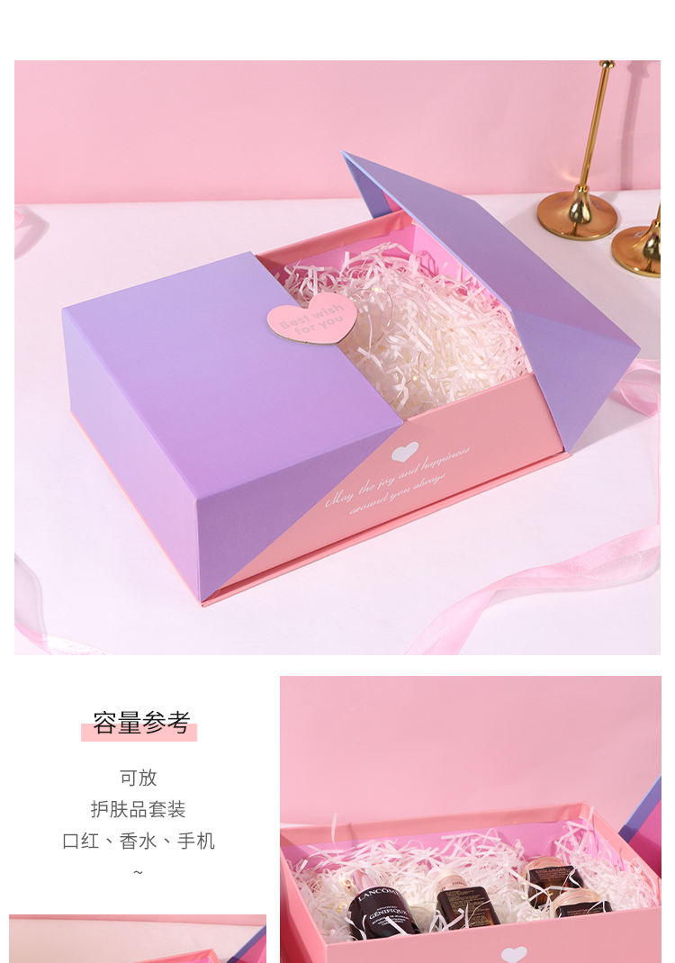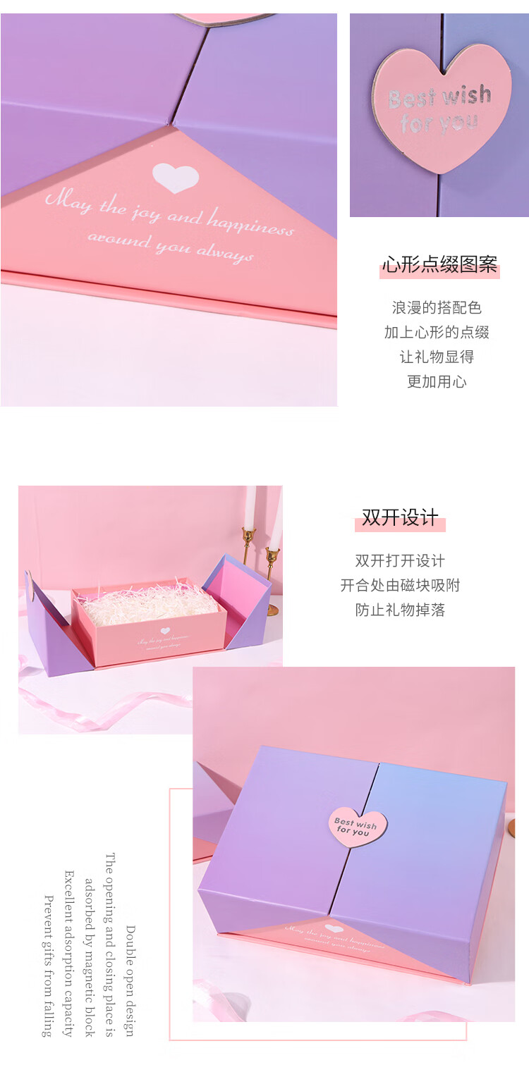 > 礼盒空盒520情人节礼物盒礼品盒生日包装礼盒双开门礼盒渐变爱心
