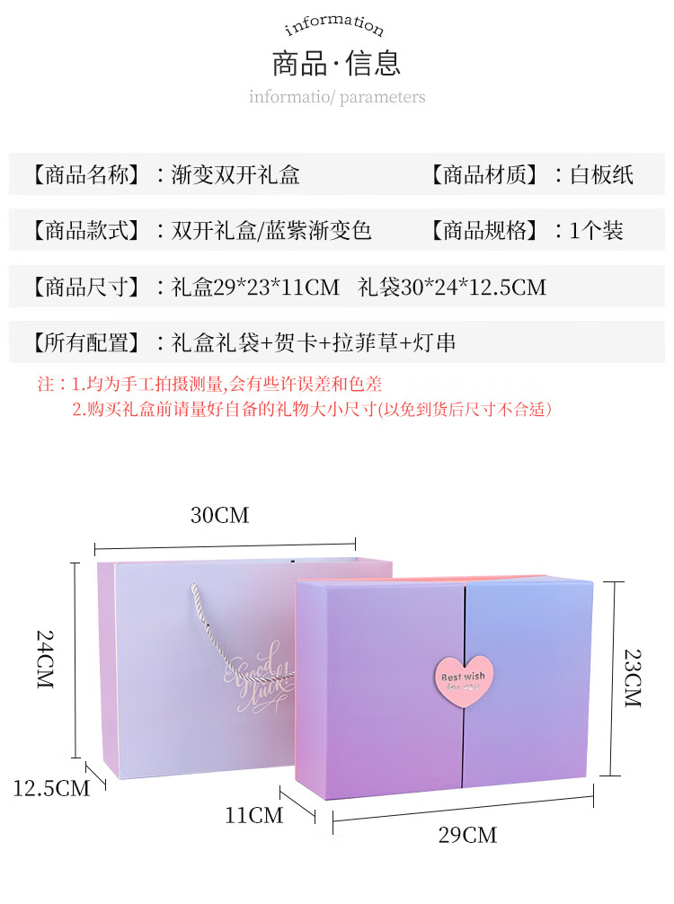 商品名称:礼盒空盒520情人节礼物盒礼品盒生日包装礼盒双开门礼盒渐变爱心