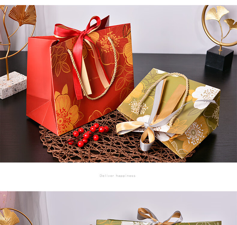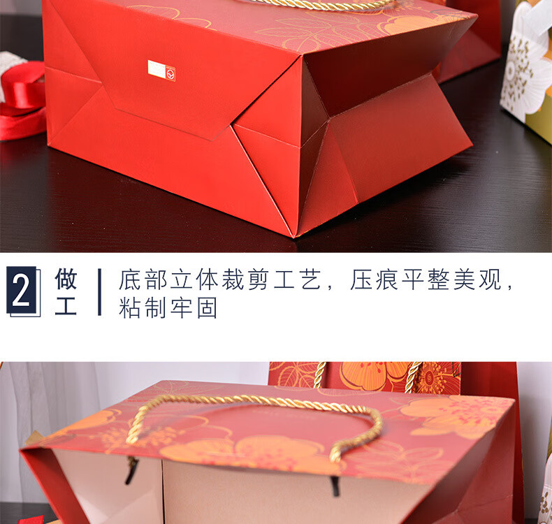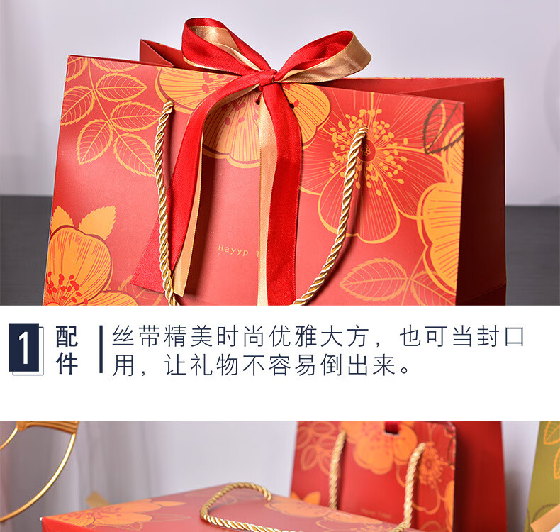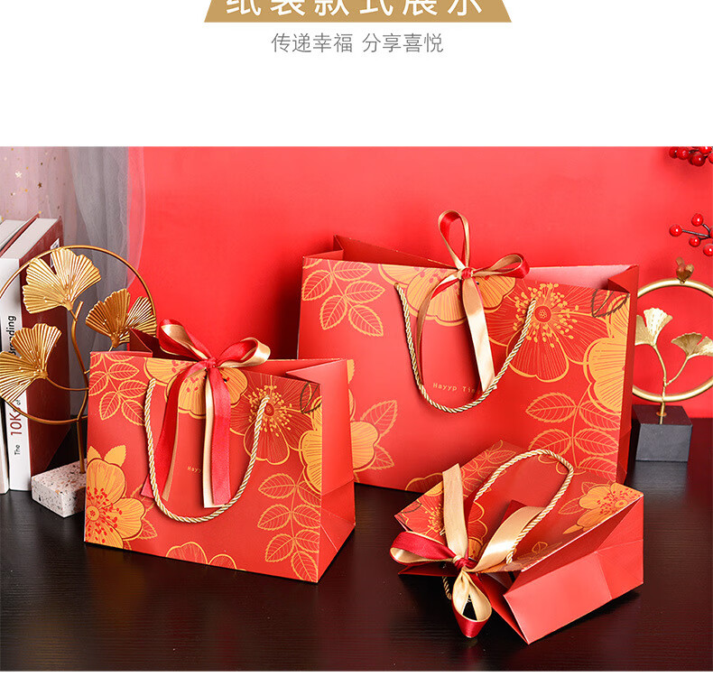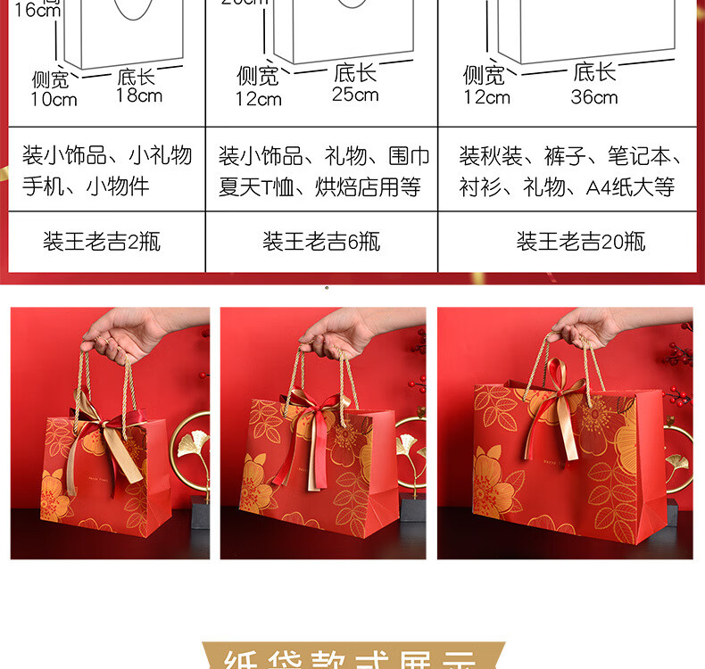 商品名称:中国风红色礼品袋 母亲节手提袋 红牡丹花 大号约36*25*12cm(3个)